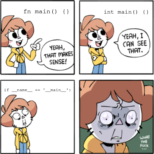 Also, do y’all call main() in the if block or do you just put the code you want to run in the if block?