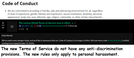 arrow-up10arrow-down1imageLemmy.world removes its rules against discriminationlemmy.worldHardlightCereal@lemmy.world to Fediverse@lemmy.mlEnglish · 2 years agomessage-square2linkfedilink