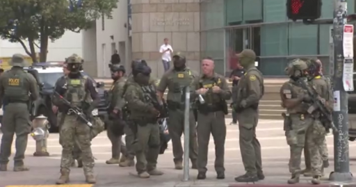 A group of masked U.S. Border Patrol agents showed up in trucks outside of the press conference at the Japanese American National Museum.