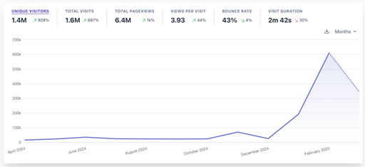📈 Since Trump was elected as the president of the USA, many people are rightfully looking for alternatives to US tech companies. The last two months, European Alternatives had an unbelievable increase in traffic, which makes me really happy. In light of that, I'll open up the analytics data of European Alternatives:
